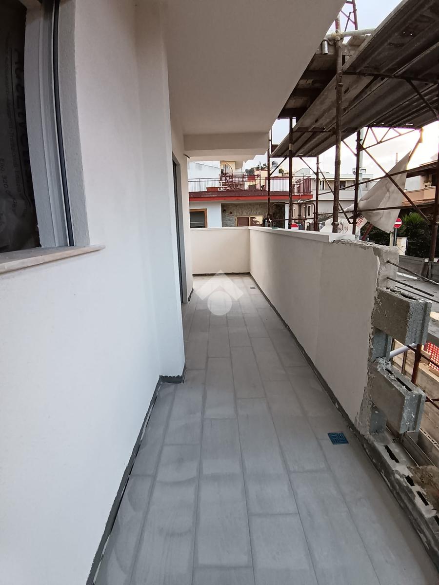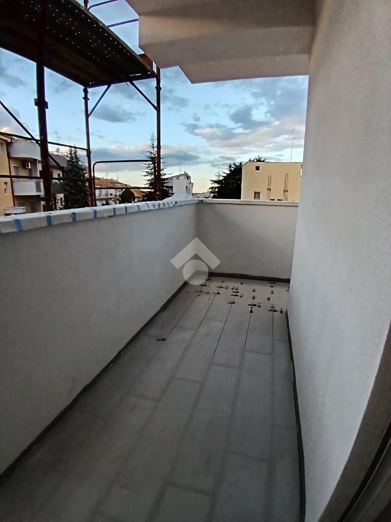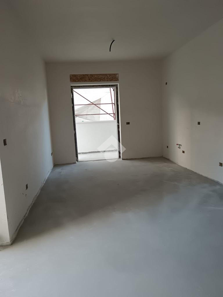 Un balcone angolare circonda l’abitazione, regalando scorci di luce e la possibilità di vivere anche gli spazi esterni in totale tranquillità.